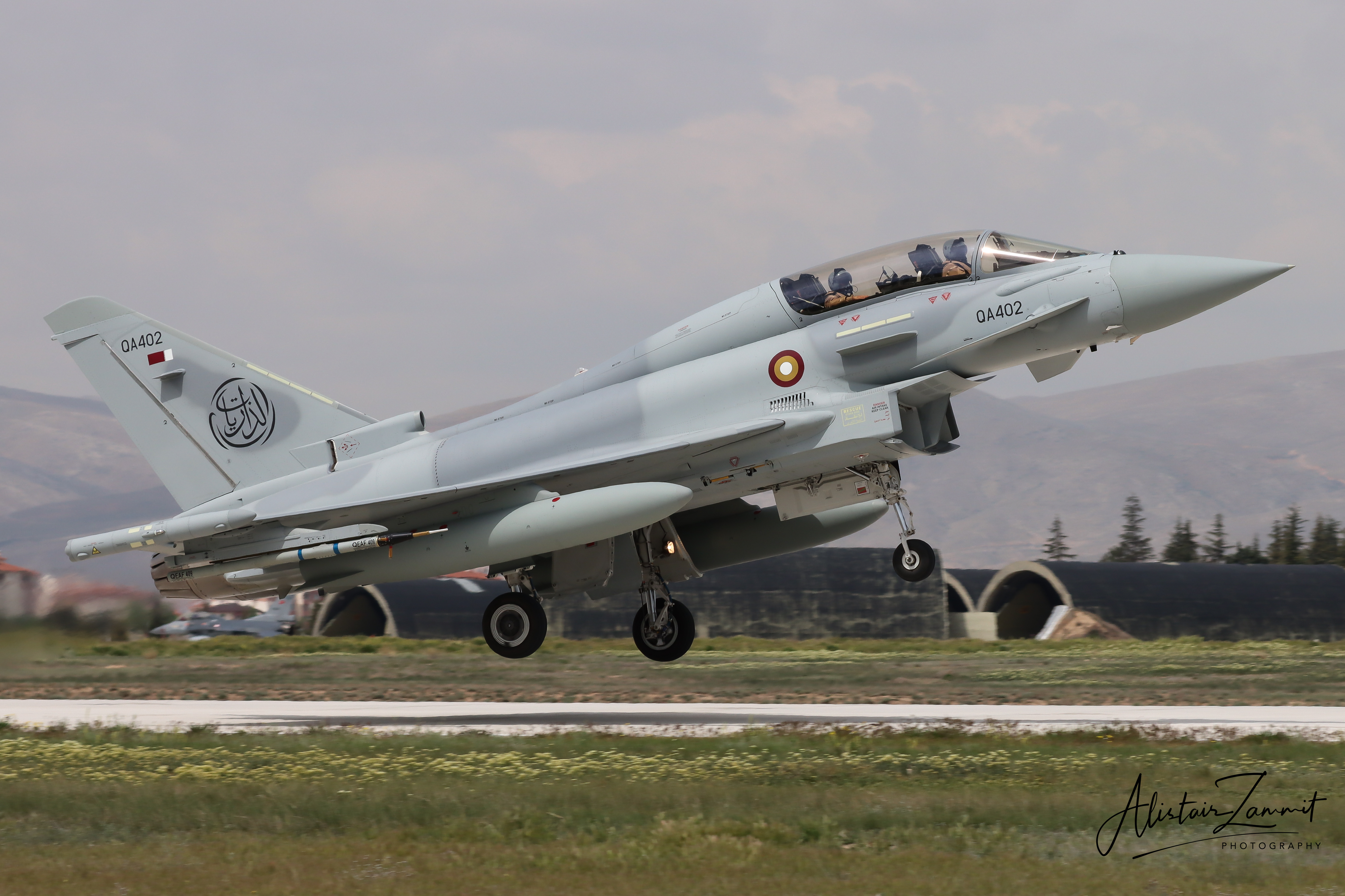 The Qatar Emiri Air Force (QAEF) participated for the first time with five of their brand new Eurofighter Typhoons, operated by 7 squadron under Flying Wing 1 at Tamim Airbase. The first Typhoons were delivered last year on August 27th, 2022, in preparation for the FIFA World Cup. This marked the first overseas exercise for the type in service with the QEAF.